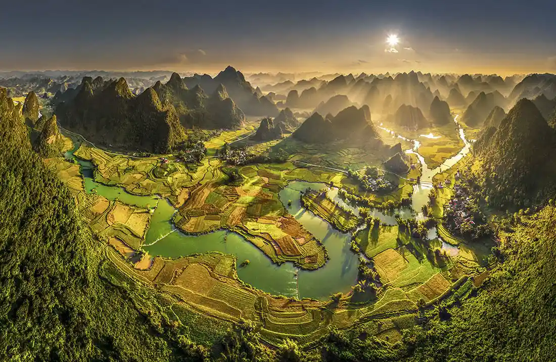 Scegliere Cao Bang significa immergersi in un’esperienza di viaggio autentica e profonda, lontana dai flussi turistici di massa. Qui, il paesaggio è un’ode alla natura: maestose montagne calcaree si ergono da valli lussureggianti, fiumi sereni serpeggiano tra risaie terrazzate e cascate impetuose creano un’atmosfera magica. È un luogo dove la pace regna sovrana e l’aria è pura. Oltre alla natura, Cao Bang è il cuore pulsante della cultura vietnamita del Nord, dove le tradizioni delle minoranze etniche Tay, Nung e Dao si manifestano in ogni villaggio, mercato e sorriso.